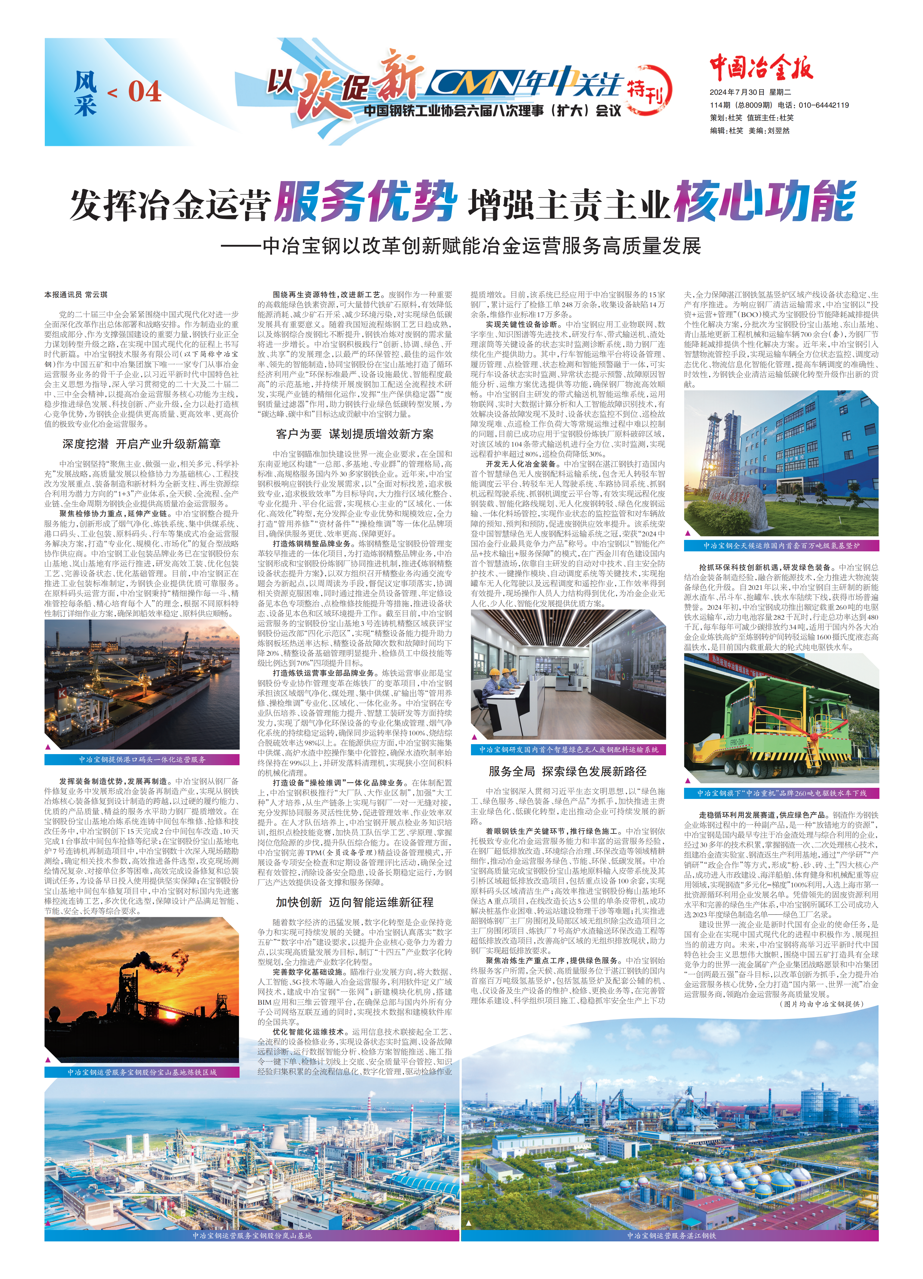 《中國冶金報》:中冶寶鋼以改革創(chuàng)新賦能冶金運營服務(wù)高質(zhì)量發(fā)展